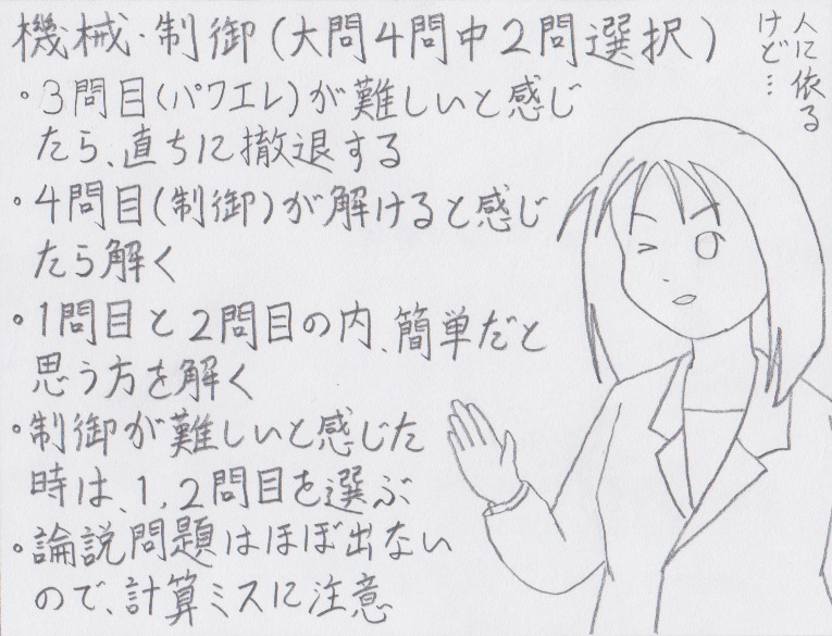 機械・制御は大問4つの中から、2つのみを選んで解答するんだったよね。これはどう選んだ? |