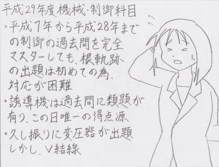 電力・管理では油入変圧器に悩まされるし、機械・制御ではV結線に悩まされるし。これで落ちたら変圧器のせいだ!と思ったわ。 |