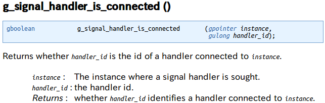 解除されているかを確認するのに、g_signal_handler_is_connectedが使える。