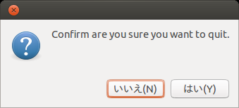 dialog = gtk_message_dialog_new(GTK_WINDOW(widget), GTK_DIALOG_MODAL | GTK_DIALOG_DESTROY_WITH_PARENT, GTK_MESSAGE_QUESTION, GTK_BUTTONS_YES_NO, "Confirm are you sure you want to quit.");result = gtk_dialog_run(GTK_DIALOG(dialog)); gtk_widget_destroy(dialog); //YESを選択した場合