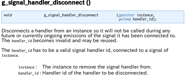 コールバック関数の解除にはg_signal_handler_disconnectを用いた。