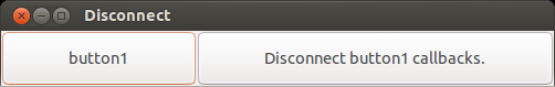 「Disconnect button1 callbacks.」ボタンをクリックする事で、 button1のコールバック関数を解除する。 再び「button1」ボタンをクリックしても、処理されなくなる。