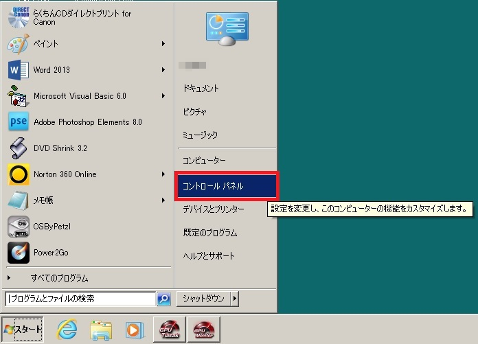 STEP2:スタートメニューの中から「コントロールパネル」をクリックする