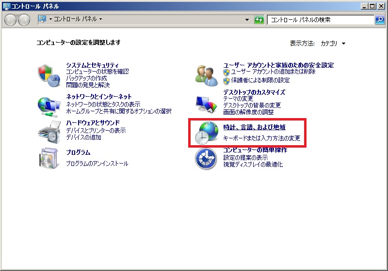 STEP3:コントロールパネルの中から「時計、言語、および地域」をクリックする