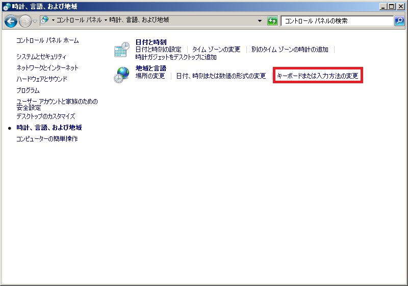 STEP4:「地域と言語」の中から「キーボードまたは入力方法の変更」をクリックする