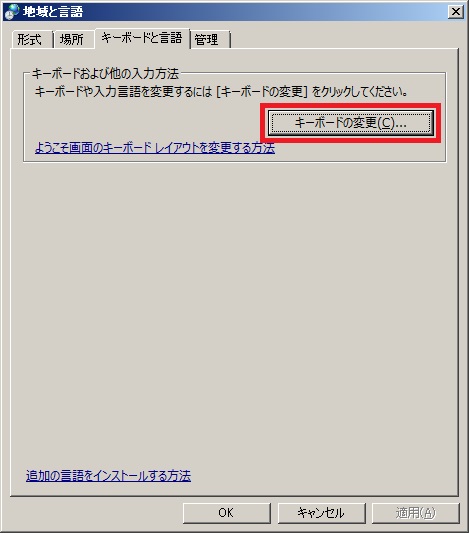 STEP5:「キーボードと言語」タブの中から「キーボードの変更(C)...」をクリックする