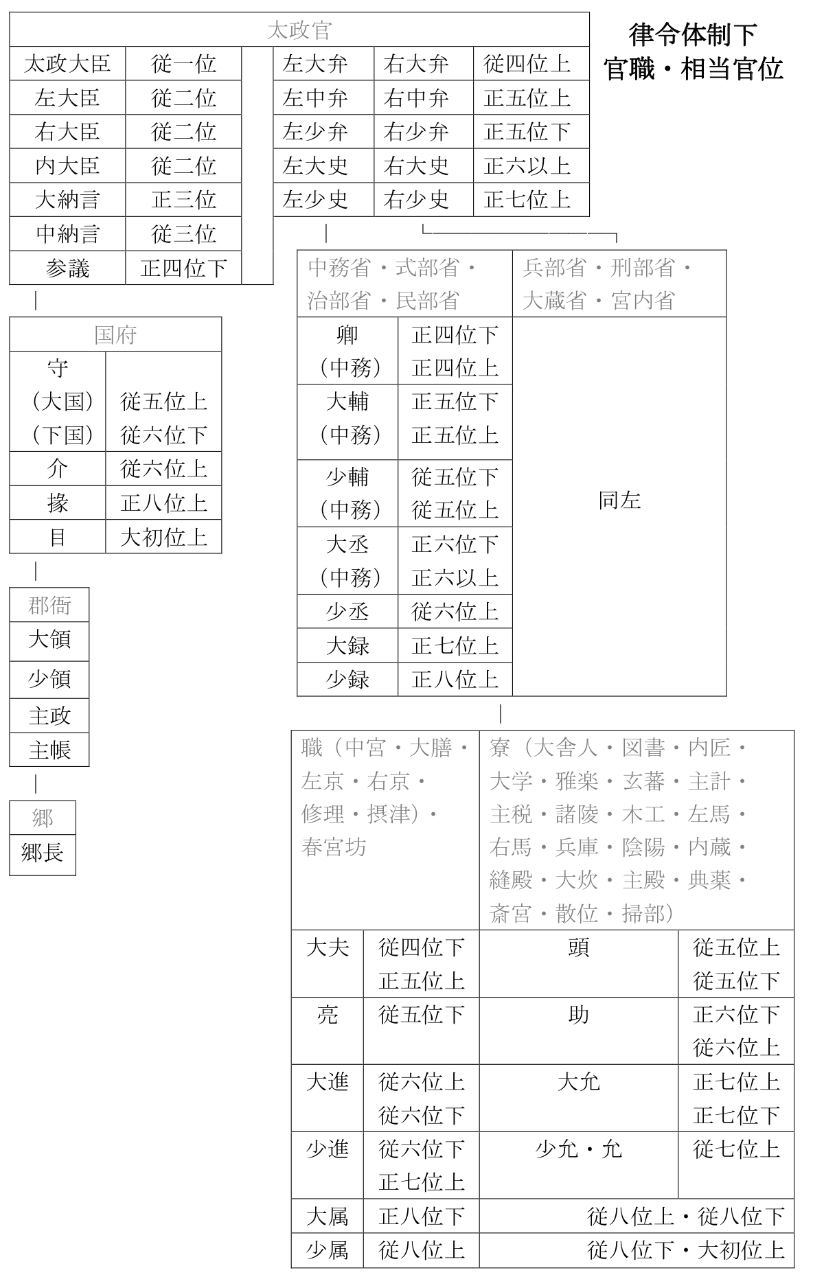律令体制下官職・相当官位