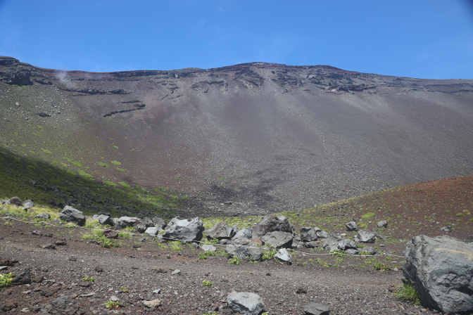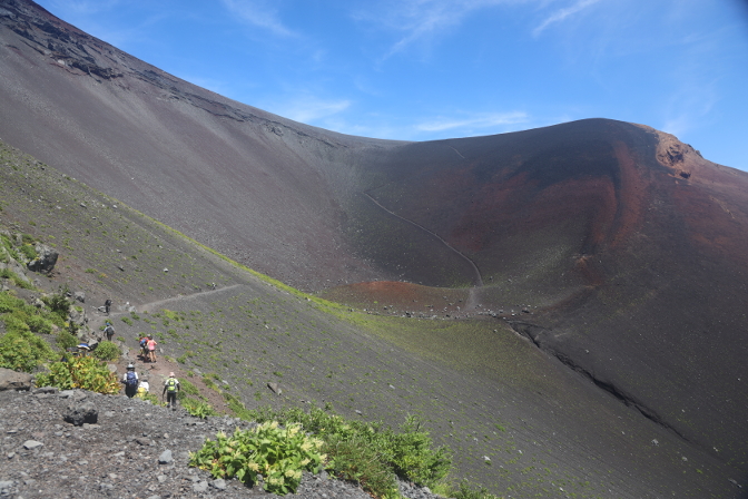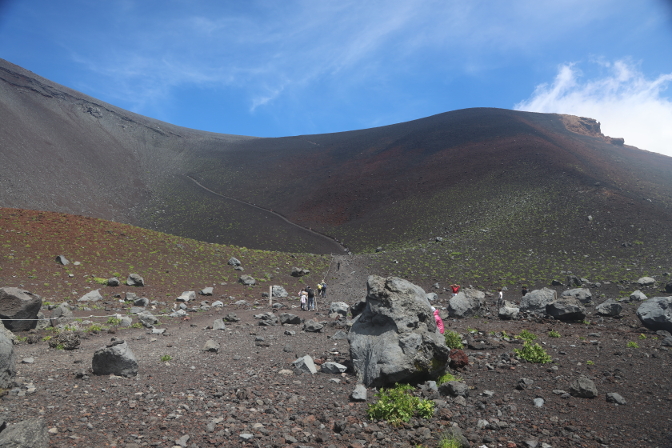 しかし途中から、楽なルートが見当たらない。仕方なく、踏み跡をたどって登る。馬の背までの登り返しは、標高差約300m。御殿場口の登りよりは楽だと、体に言い聞かせて登って行くが、高山病が怖くて休み休み登る。