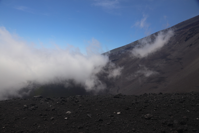 宝永火口にも、雲が涌き出した。すでに正午を回っている。天候に不安が有り、馬の背へ戻る事とした。さようなら、宝永山。良い山だった。