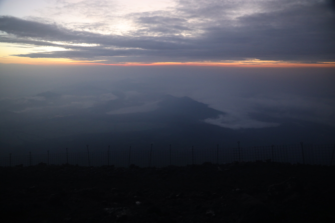 すぐに、御殿場口山頂に到着。無念の極み。さらに東へ進み、朝日岳を通過。伊豆岳と成就岳の間辺りにザックを下ろし、御来光を待つ事にした。
