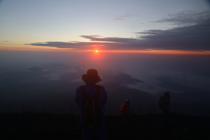 そろそろ御来光を拝み終えた人々が、辺りから離れて行く。
