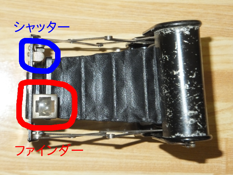 ファインダーは上からのぞくようになっていて、しかも左右逆に映る。これが白く濁っていたので、よぼど目立つものが無いと、何が映っているのか分からない。